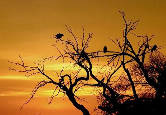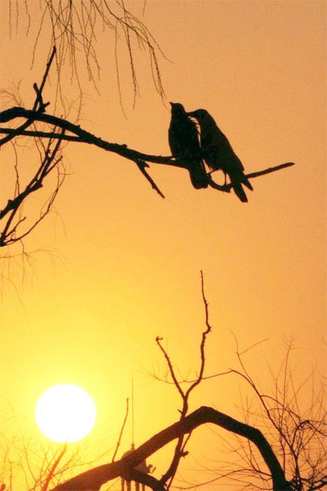 枯藤,古树,昏鸦,这三样东西,其实是三个个体,表面上看起来好像没有内在联系,但是,有古树的地方,肯定有枯藤,所以枯藤会缠绕着古树,就像梁山伯与祝英台谁也离不开谁,有古树的地方,树丫上肯定有鸟来栖息,但是乌鸦也是其中之一,所以说,枯藤古树昏鸦在特定的时间里肯定有内在联系。枯藤古树昏鸦凑在一起的时候,有一种苍凉的意境,让人一下子想到了秋天。一棵饱经沧桑的古树,经过寒风虐待,古树上的树叶已经凋谢,只有树枝上那些残留的枯叶还在风中摇曳,树干上那些缠绕的枯藤还是攀爬着,在一个夕阳西下的傍晚,不知从何方飞来的一只昏鸦,孤零零地停在树枝上,昏昏沉沉的乌鸦在没有伴侣的情况下,对着远方的落日开始哀叫,仿佛在呼喊它同伴的名字,瞬间让人产生一种浮想联翩的感觉,同时也输送着一种苍凉深远又渴望对生命美好的意境……